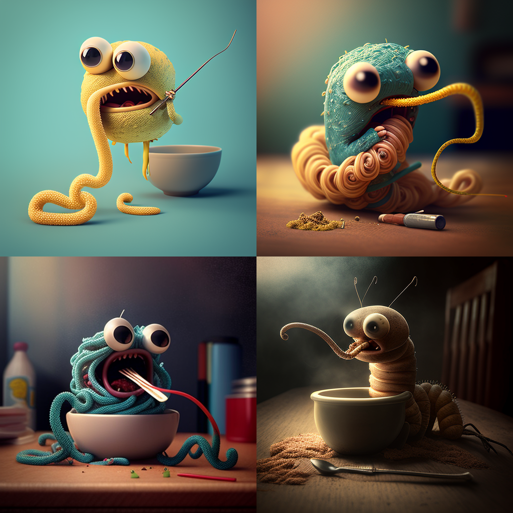 Noodles Eating a Worm