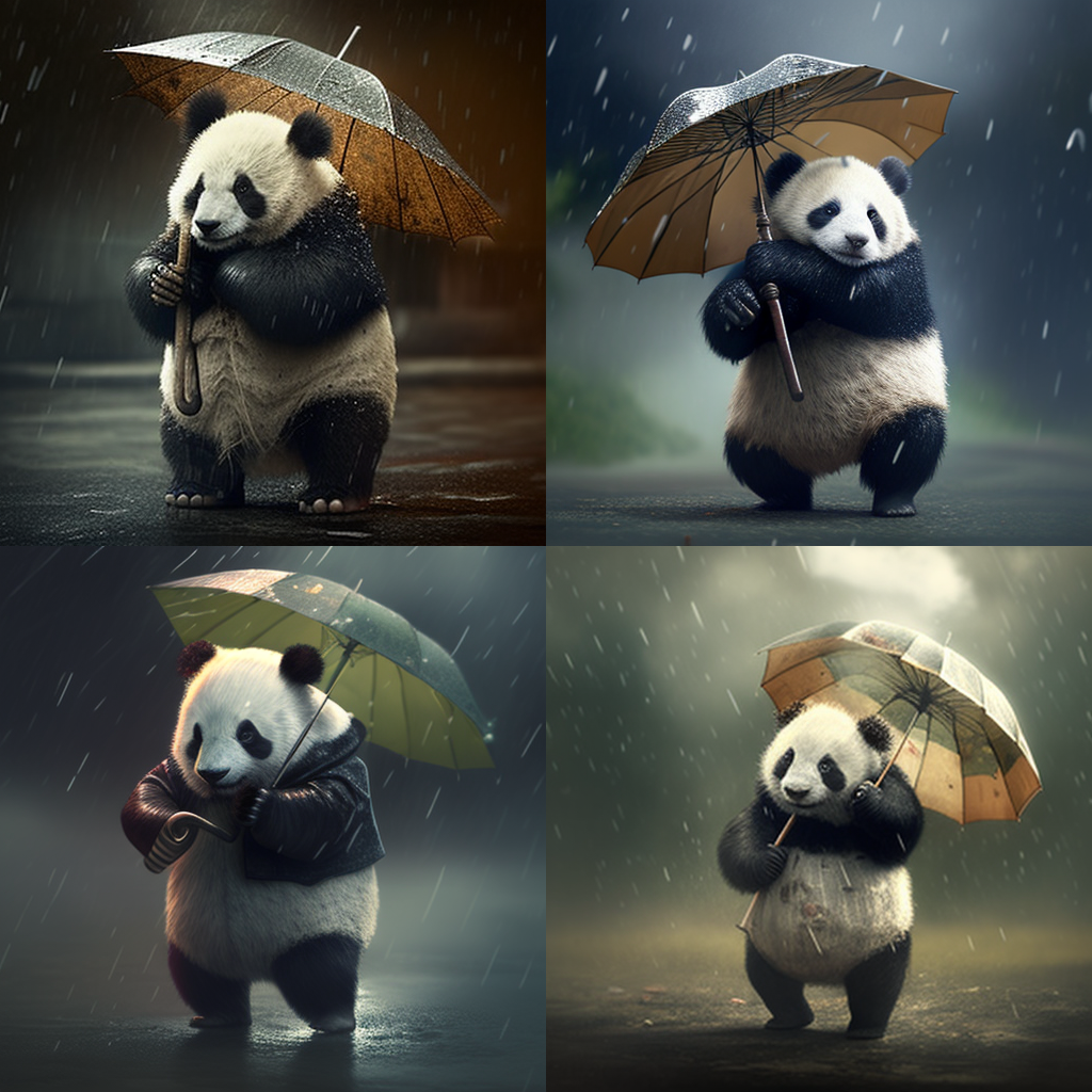 Panda Holding An Umbrella In A Windy Weather